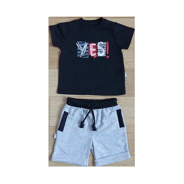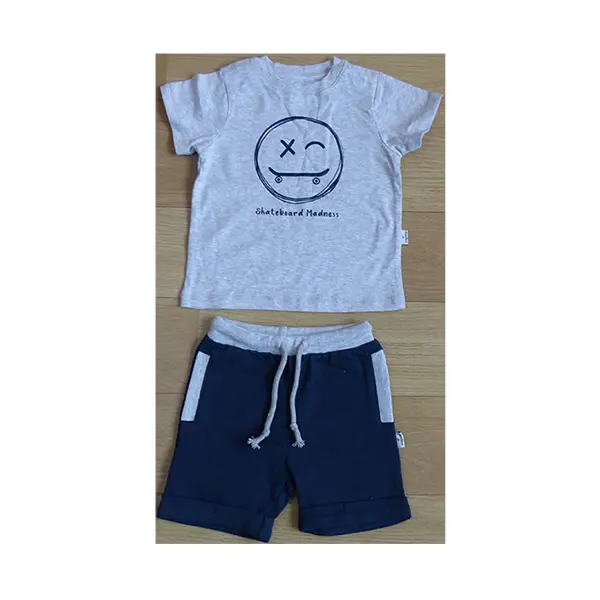 Top shirt is plain color with an offset print or allover print, bottom shorts is plain color or allover print. Colors of the clothing can be customized.
