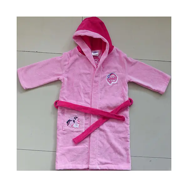 OEM/ODM 100% Cotton Terry Velour Plain Dyed Baby Hooded Bathrobe with Embroidery